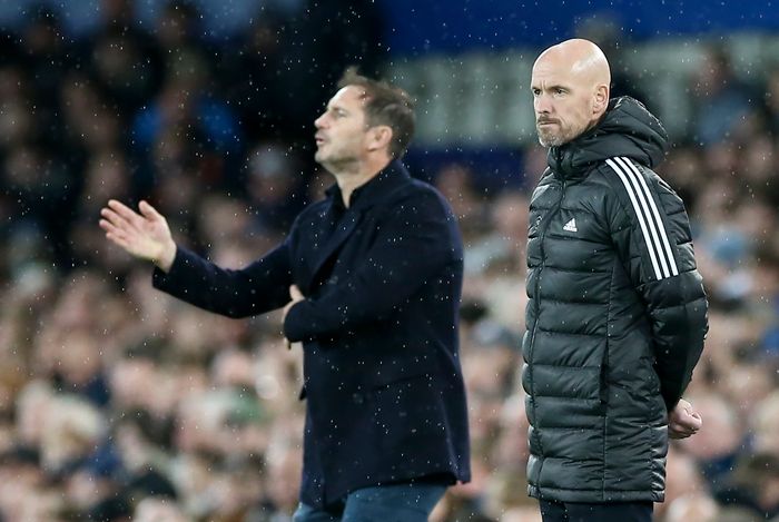 Det er altså Erik ten Hag mot Frank Lampard. Om man skal snakke manager-språk. Her fra en kamp i september i fjor. Foto: EPA