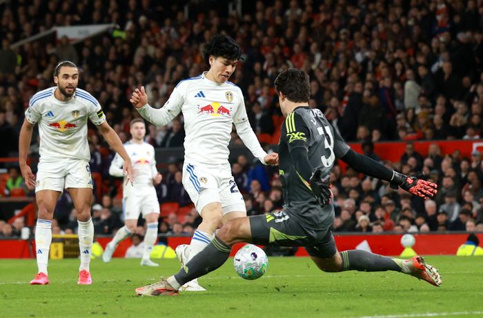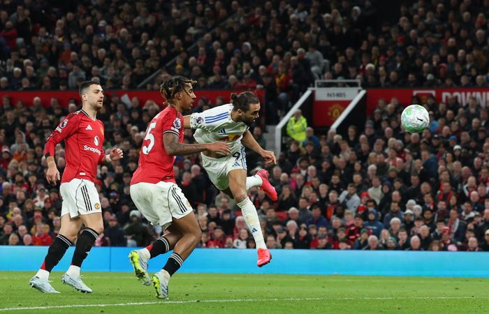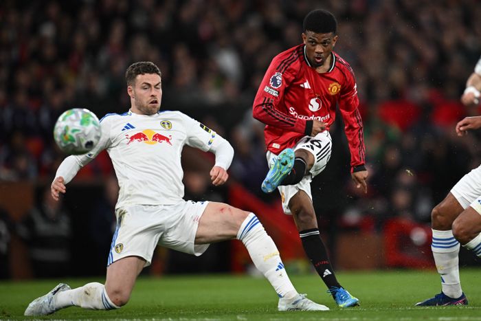 Amad slår mot første stolpe. Leeds klarerer enkelt.