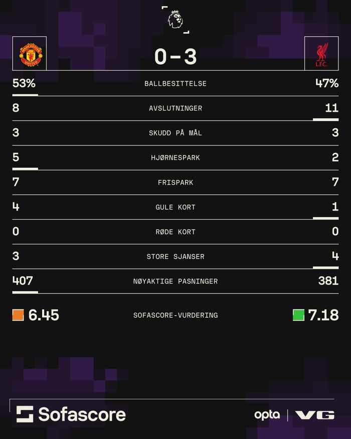 3-0! Gratulerer til alle med Liverpool-hjerte! Føler med United-supportere som må vente to uker til neste kamp etter et slikt tap. Dette svir. Liverpool vinner fortjent, men de får god hjelp av United. De roter det til for seg selv på samtlige mål.