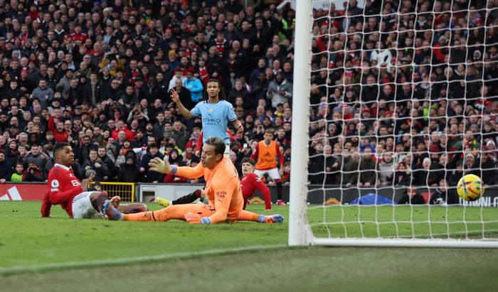 HVA SKJER HER? Casemiro slår mot Rashford i bakrom. Spissen er soleklart i offside, jager ballen, men rører den aldri. I stedet følger Fernandes opp, snapper kula og avslutter på direkten. Linjedommeren tar opp flagget, men Fernandes raser. Dommerteamet snur, og United utligner!