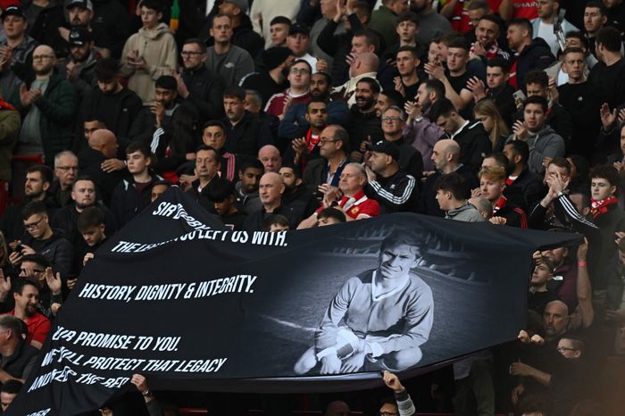 Bobby Charlton hedres før kampstart. United-legenden gikk bort forrige uke, 86 år gammel.
