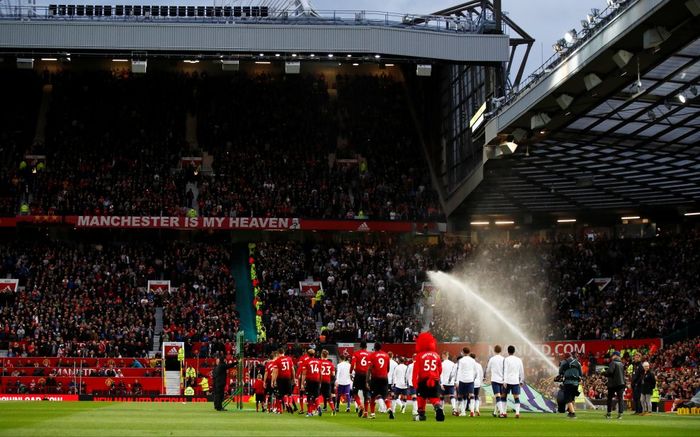 This Is The One av The Stone Roses runger på sedvanlig vis over Old Trafford idet spillerne entrer gressteppet. Det er fullsatt på stadion! Foto: Reuters.