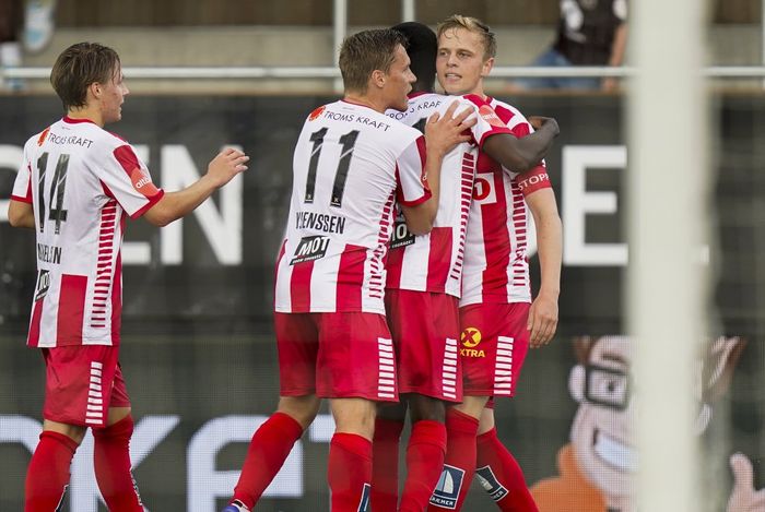 Tromsøs startoppstilling: 1 Jacob Karlstrøm - 4 Jostein Maurstad Gundersen, 5 Anders Finjord Jenssen, 6 Isak Helstad Amundsen, 8 Kent-Are Antonsen, 11 Ruben Yttergård Jenssen, 16 Tomas Olai Totland, 21 Eric Bugale Kitolano, 25 Lasse Nilsen, 14 August Mikkelsen, 18 Ebiye Moses.