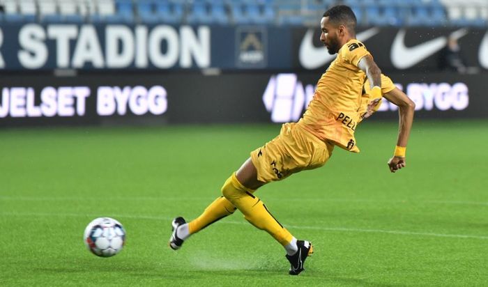 Pellegrino hadde en kjempesjanse til å gi Glimt ledelsen. Foto: Bjørn S. Delebekk.