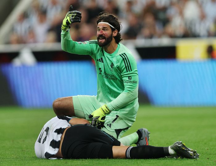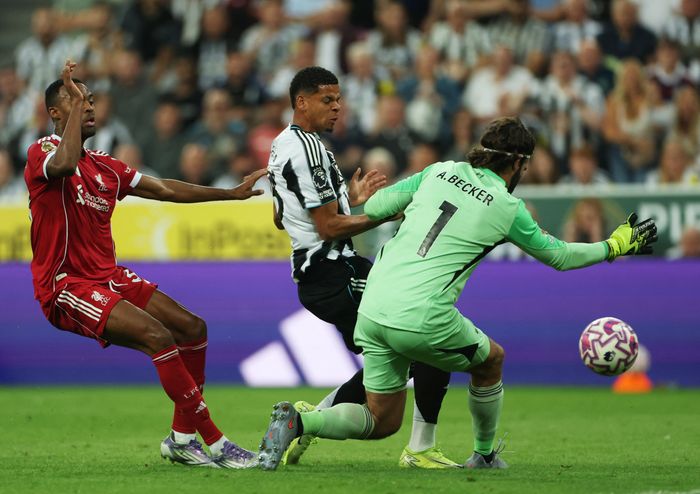 Ny god kontring av Newcastle. Nå er det Liverpool-keeper Alisson som er våkent ute og hindrer avslutning.