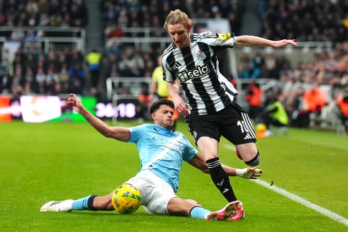 Newcastle pumper den tilbake. Joelinton vinner på 16 meter og header inn i feltet, men der får City klarert like foran Woltemade.