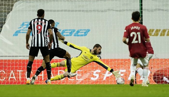 FOR EN REDNING! Wow, De Gea! Saint-Maximin spinner rundt med United-forsvaret inne i boksen. Deretter legger han inn til Wilson som avslutter fra fire meter. De Gea er nede med en feberredning! Foto: Reuters.