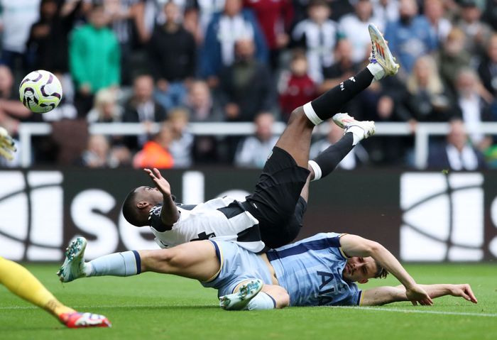 Tottenham Hotspur FC angriper på St James' Park. Radu Matei Dragusin header utenfor.