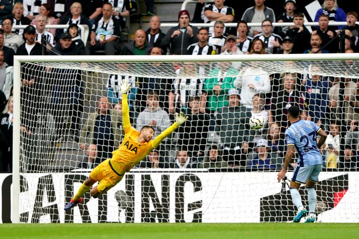 Frisparket tildelt Tottenham Hotspur FC er farlig nær Newcastle United FCs målområde.