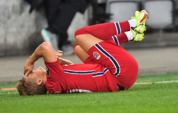 Ødegaard får seg en skikkelig smell i foten etter en sen takling. Men det ser ikke ut til at det er alvorlig.