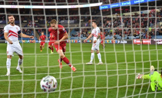 Norge vinner 5-1! Det var aldri særlig tvil om hvor seieren ville gå og Erling Braut Haaland ble kampens store spiller med tre scoringer. Med det er Norge oppe på andreplass i gruppen, bak Nederland på dårligere målforskjell.