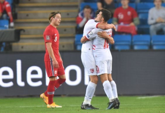Det ble også 3-0 til Norge i bortekampen mot Gibraltar i mars. Da sto det 0-0 frem til like før pause. Sørloth, Thorstvedt og Svensson scoret målene.