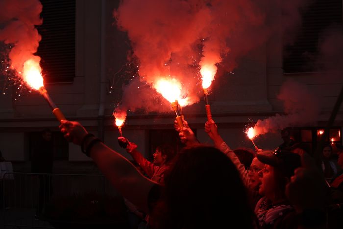 Det er store demonstrasjoner i Oslo sentrum i forkant av kampen, og det er også innført en rekke ekstra sikkerhetstiltak rundt stadion. Her kan du lese alt du trenger å vite om det som skjer i og rundt kampen: https://www.vg.no/sport/i/lwpXA9/norge-israel-dette-maa-du-vite Foto: Siamak Nematpoor/ VG