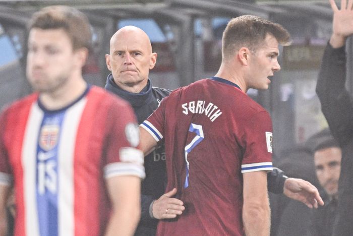 Oscar Bobb blir altså Martin Ødegaards erstatter. Vår kaptein måtte melde forfall etter en kneskade han pådro seg mot West Ham. Patrick Berg er også inne for Felix Horn Myhre fra Moldova-kampen, så Solbakken gjør to endringer. Foto: Bjørn S. Delebekk / VG.