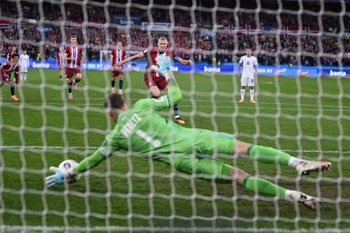Erling Braut Haaland har spinnville 48 mål på 45 landskamper. Hvor mange scorer han i kveld?