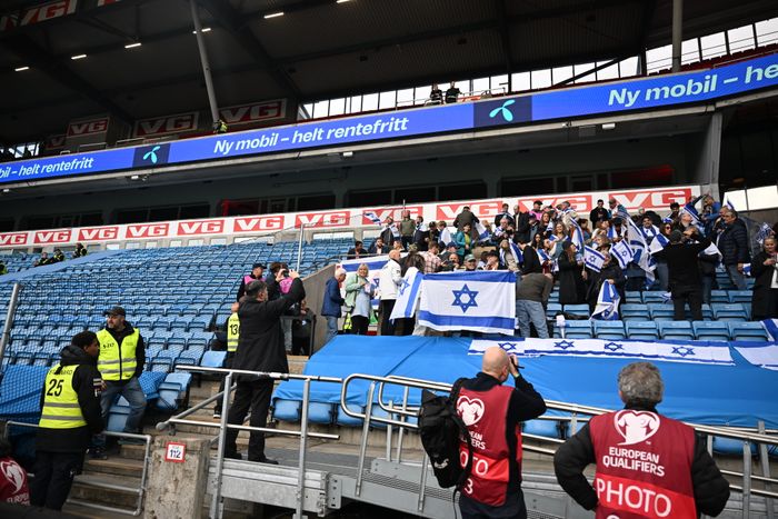 Israelske supportere er på plass. Foto: Bjørn S. Delebekk / VG.