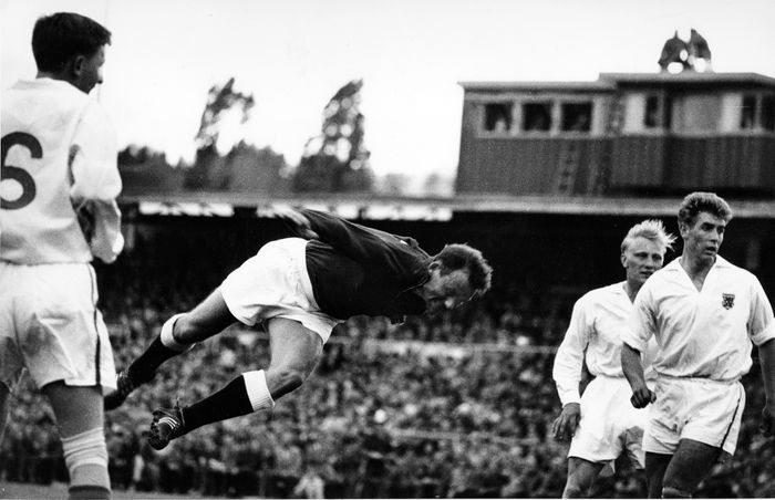 Det er altså Harald Hennum, som spilte 43 kamper og scoret 25 mål for Norge mellom 1949 og 1960.