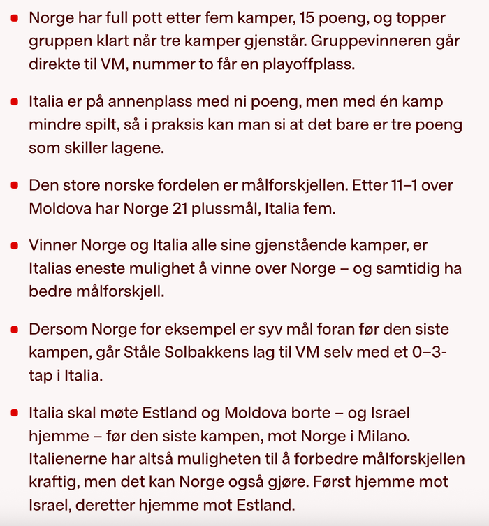 Og følg med på VG.no for reaksjoner gjennom kvelden. Vi liver også Italias kamp mot Estland kl. 20.45.