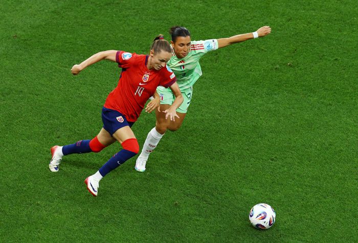 Reiten med et strålende brudd før hun finner Hegerberg. Pasningen fra Lyon-spissen mot Naalsund er dessverre ikke god nok, og rytmen i angrepet forsvinner.