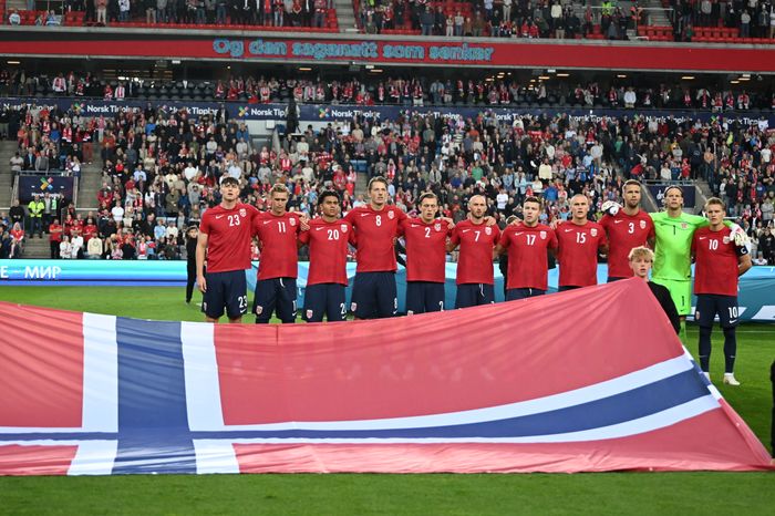 Ståle Solbakken sender utpå disse for Norge i en 4-3-3-formasjon: Nyland - Holmgren Pedersen, Ajer, Østigård, Bjørkan - Ødegaard, Berge, Aursnes - O. Solbakken, Strand Larsen, Nusa.