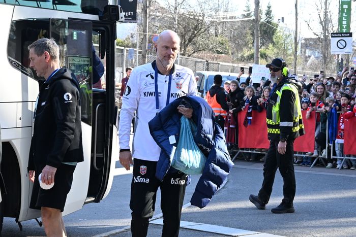 Solbakken til TV 2: - Det er en overall tenking i forhold til belastning, sier landslahgssjefen om startelleveren. Han legger til at Keeper Ørjan Håskold Nyland står 1. omgang, mens Egil Selvik står 2. omgang.