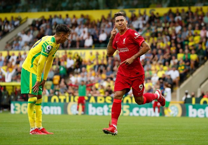 Si señor runger over Carrow Road fra de tilreisende Liverpool-supporterne så fort Firmino entrer gresset.