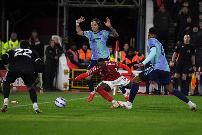 Frispark til Forest rett innenfor Arsenals banehalvdel.