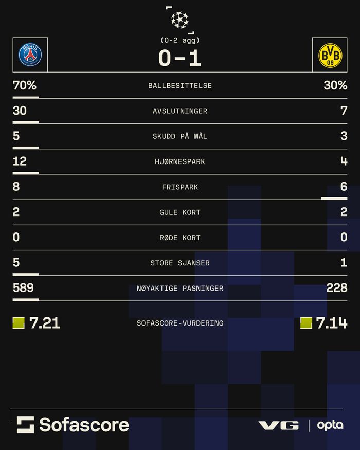 Dortmund med fem bak nå. Gjør det svært vanskelig for PSG å finne rom