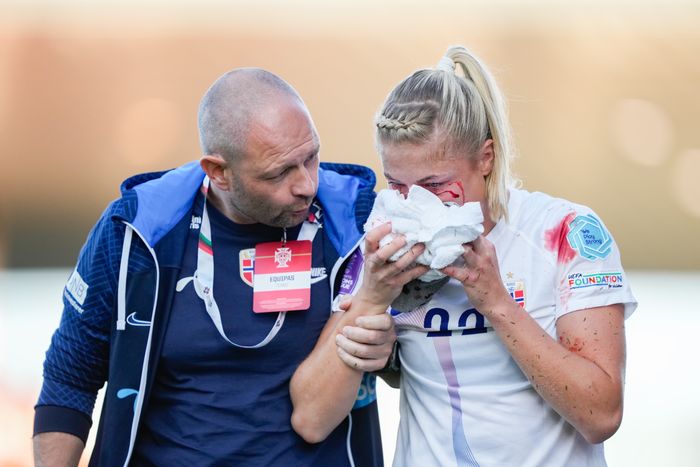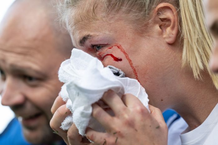 Vi vet ikke nøyaktig hvor ille det er ennå. Det så ut til å ha gått ut over nesen. Vi får håpe hun er klar for Liverpool når ligaen starter.