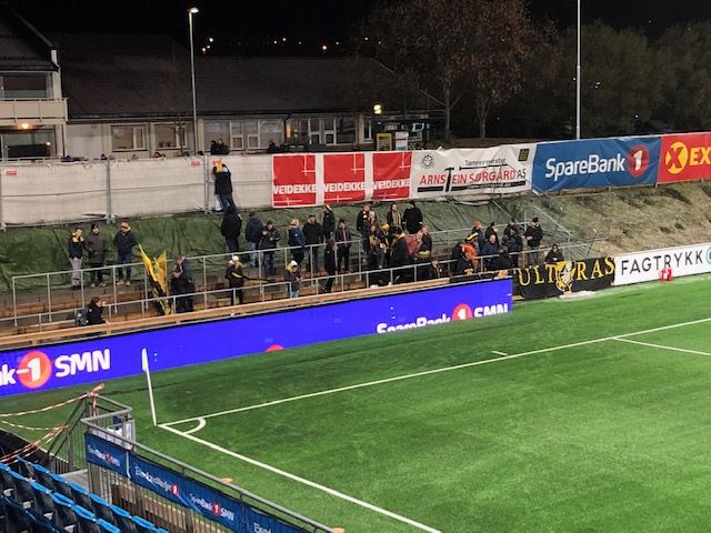Trampeklapp på tribunen nå. Hjemmefansen øyner håp. Blant Kanarifansen er det stille.