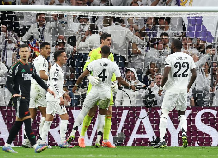 Stygg miss av Saliba. Gir fra seg ballen til Vinicius, som scorer.