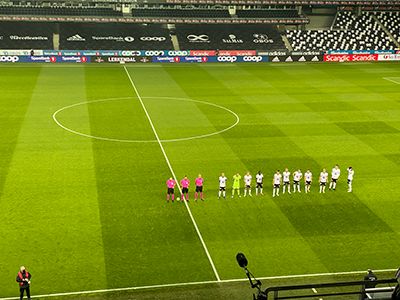 Først DER, et par gode minutter etter hjemmelaget, kommer et helblått PSV ut til oppstilling - akkurat i tide til å høre «Bilde ta'n Ivers».