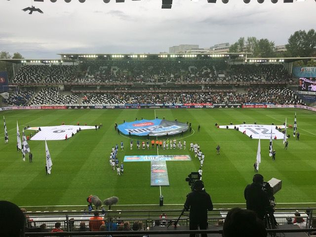 Om lag hundre bortesupportere har tatt plass i bortesvingen. Det er ikke fullsatt på Lerkendal, men relativt bra med folk.