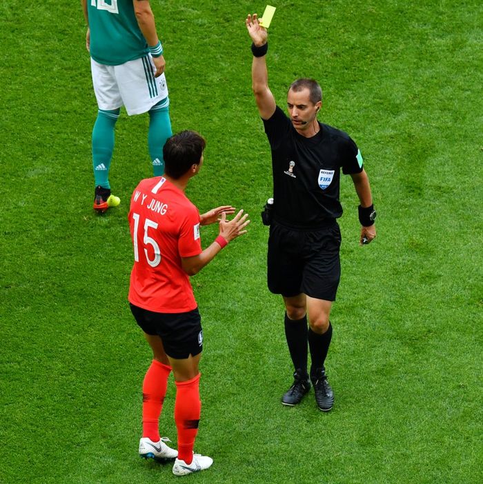 Høyt spark fra Khedira. Frispark til Sør-Korea cira 30 meter fra mål.