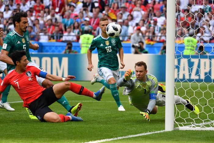 Den er stor for Korea! Son Heung-min skyter like utenfor mål fra 16 meter. Neuer med en sterk redning.