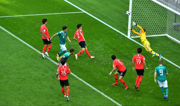 Sør-Korea gir bort ballen på egen halvdel og gir Tyskland en mulighet. Özil legger ut til Werner på høyresiden av boksen, men skuddet blokkeres ut til en corner.