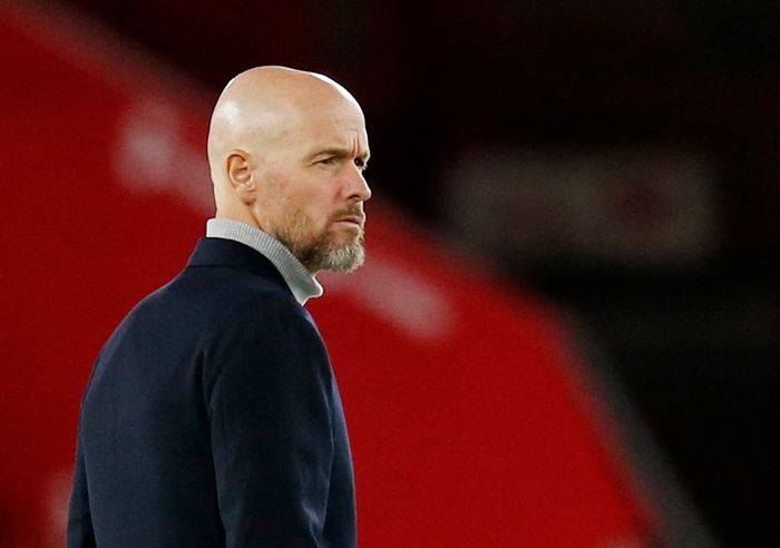 Erik ten Hag er fyrt opp nå. Forsøker å jage gjestene fremover i press.