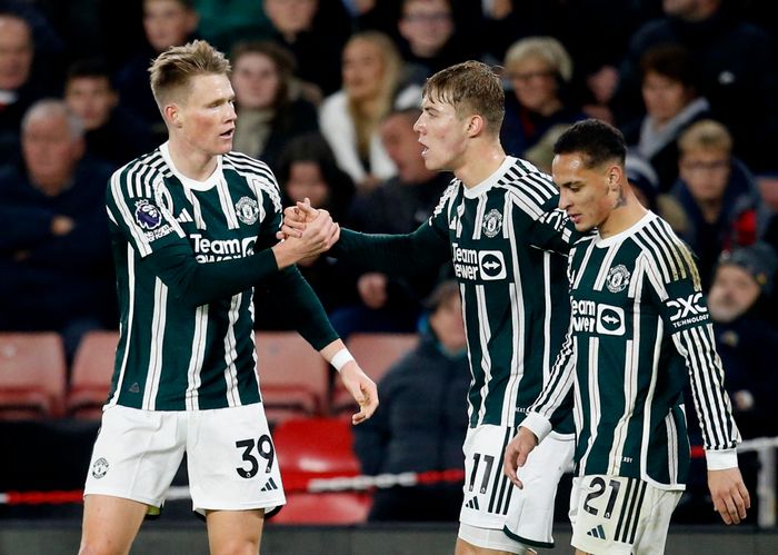 Casemiro er skadet og nøkkelspilleren kommer ikke på banen for Manchester United i denne kampen. Han blir erstattet av Sofyan Amrabat i den dype midtbanerollen. Scott McTominay kommer inn fra start etter at hans to overtidsmål ga seier over Brentford sist.Antony er i startoppstillingen eter at mason Mount startet sist.