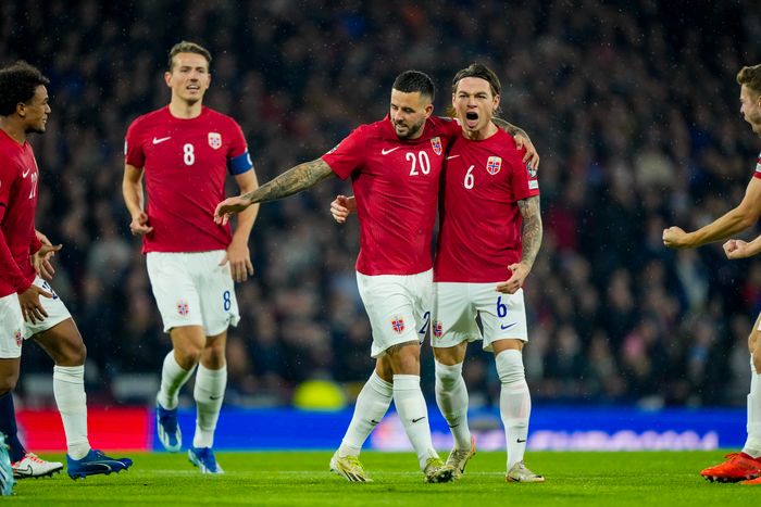 Slik starter Norge (4-3-3): Egil Selvik - Julian Ryerson, Leo Østigård, Kristoffer Ajer, Fredrik Bjørkan - Sander Berge, Patrick Berg, Fredrik Aursnes - Oscar Bobb, Jørgen Strand Larsen, Aron Dønnum.