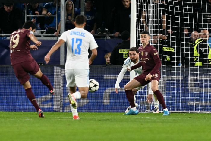 Det blir fryktelig enkelt for Manchester City. Doku får gå relativt uhindret, og ingen markerer Foden. Han triller ballen i mål, og der er han endelig i gang for City etter en litt seig start på sesongen. Foto: Joe Klamar / AFP