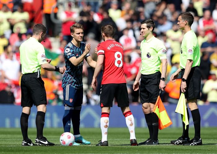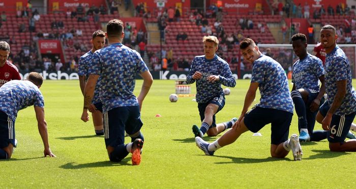 Ødegaard og lagkameratene avbildet under oppvarmingen på St. Mary's.