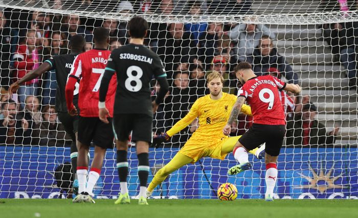 Southampton roper på straffe! Konaté dytter Armstrong i ryggen, men får ikke straffe i den situasjonen. Så grei ut. Southampton ypper seg!