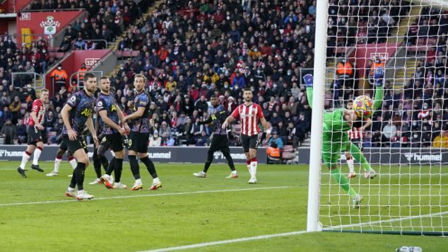 Corner til hjemmelaget. Ward-Prowse tar det, men Kane header unna.