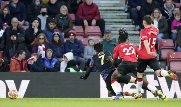 Salisu feller Son alene igjennom. Klipper ned Son, og det er straffe. Sqalisus andre gule og rett ut.