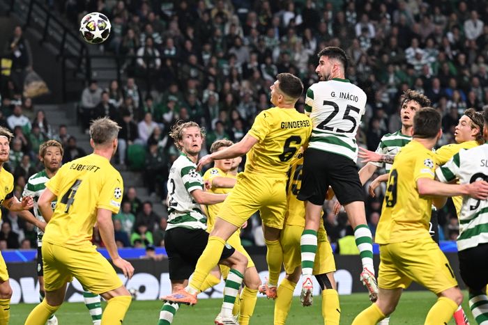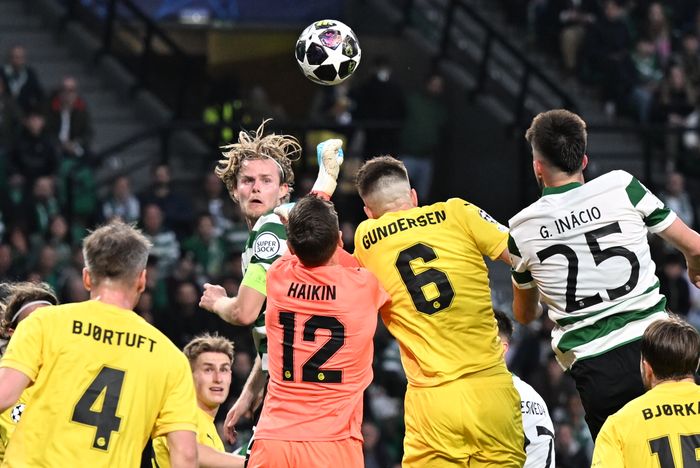 Godt slått hjørnespark. Ballen er fri i boksen, men Sporting får til slutt klarert unna.