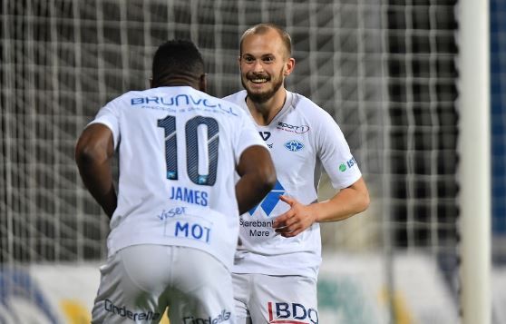 Amankwah går i ryggen på James. Frispark til Molde på midtbanen.