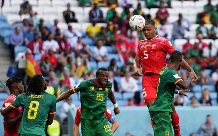 Vargas prøver et innlegg. Kamerun blokkerer og Sveits må starte på ny.