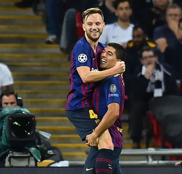 WOW! Rakitic dobler for Barcelona! Det er en så vanvittig deilig scoring. Kroaten dundrer til på volley fra 20 meter via stolpen og i mål. Det er en fest for øynene å se på. Foto: AFP