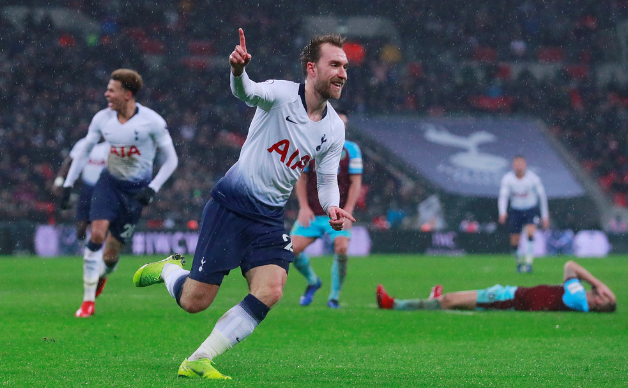 SÅ SITTER DEN!!! Lagt opp, Llorente i været, Alli forlenger, Kane på tvers til Eriksen som banker ballen forbi Hart!!! Foto: REUTERS.