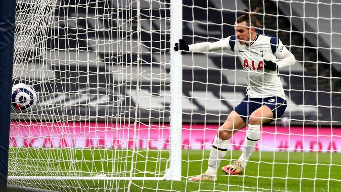 Gareth Bales femte mål på siste seks kamper. Og Harry Kanes 12. ligamålgivende for sesongen.